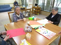 介護の堀田です(^^♪今日はお客様にカラフルな画用紙を切って戴いています✂何気ないはさみを操る行動も手の動きの練習になります!さあ何が出来るかはお楽しみ♬「うまく切れないよ~」と言いながらもおしゃべりをしながら楽しそうな雰囲気に包まれていますね