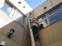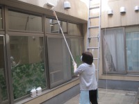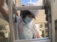 ケアマネージャーの成澤です(^^♪今日は中庭の外壁が雪や氷柱、温泉のガスで大きくひびが入った所を修復中です。本日はまず修復剤を塗布してひびを塞ぎます~さあ明日は塗装です!ちなみにヘルメットを着用の上2名で安全に作業しています
