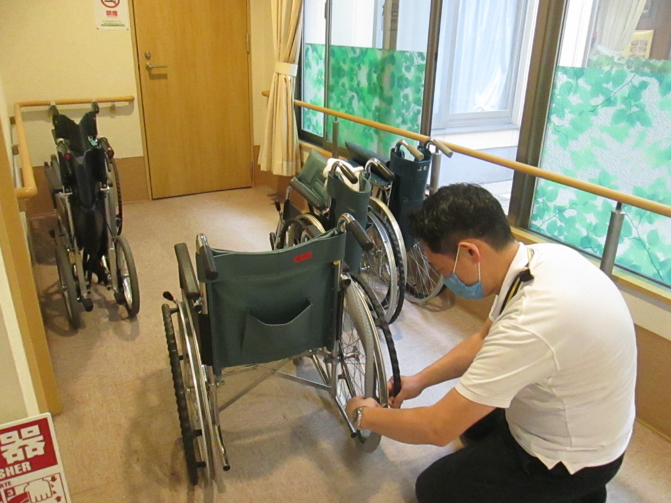 毎回施設の車いすなど故障した物は施設長が忙し業務の間に修理しています!!