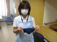 施設長の福田です(=^・^=)今日のマスクは介護スタッフの熊川さん作!立体的でフィット感抜群~本日の草津は観光客と思われる方が先週より急に増えた様な気がします。2週間後の為にもう少し頑張りましょう~