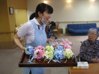 看護師の徳江です(^_-)-☆今日のおやつは母の日にちなんで安中市板鼻の「杉本屋」さんの緋鯉・真鯉・兜をかたどった和菓子を召し上がって戴きました🎏そして女性のお客様にはお花の飾りもプレゼント!美味しく楽しい母の日でした~