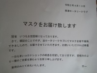 本日「草津町ロータリークラブ様」からマスクを2箱戴きました。手作りマスクのキットでさえ品薄のこの時期に、しかも雨の中わざわざ施設まで届けて戴き本当に有難いですね…心から感謝申し上げます。