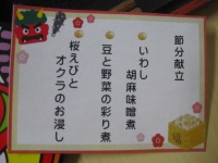 今日のお昼は節分にちなんで「豆」と「鰯」の料理(^^♪美味しい!!!絶品料理に皆様大喜びでした~