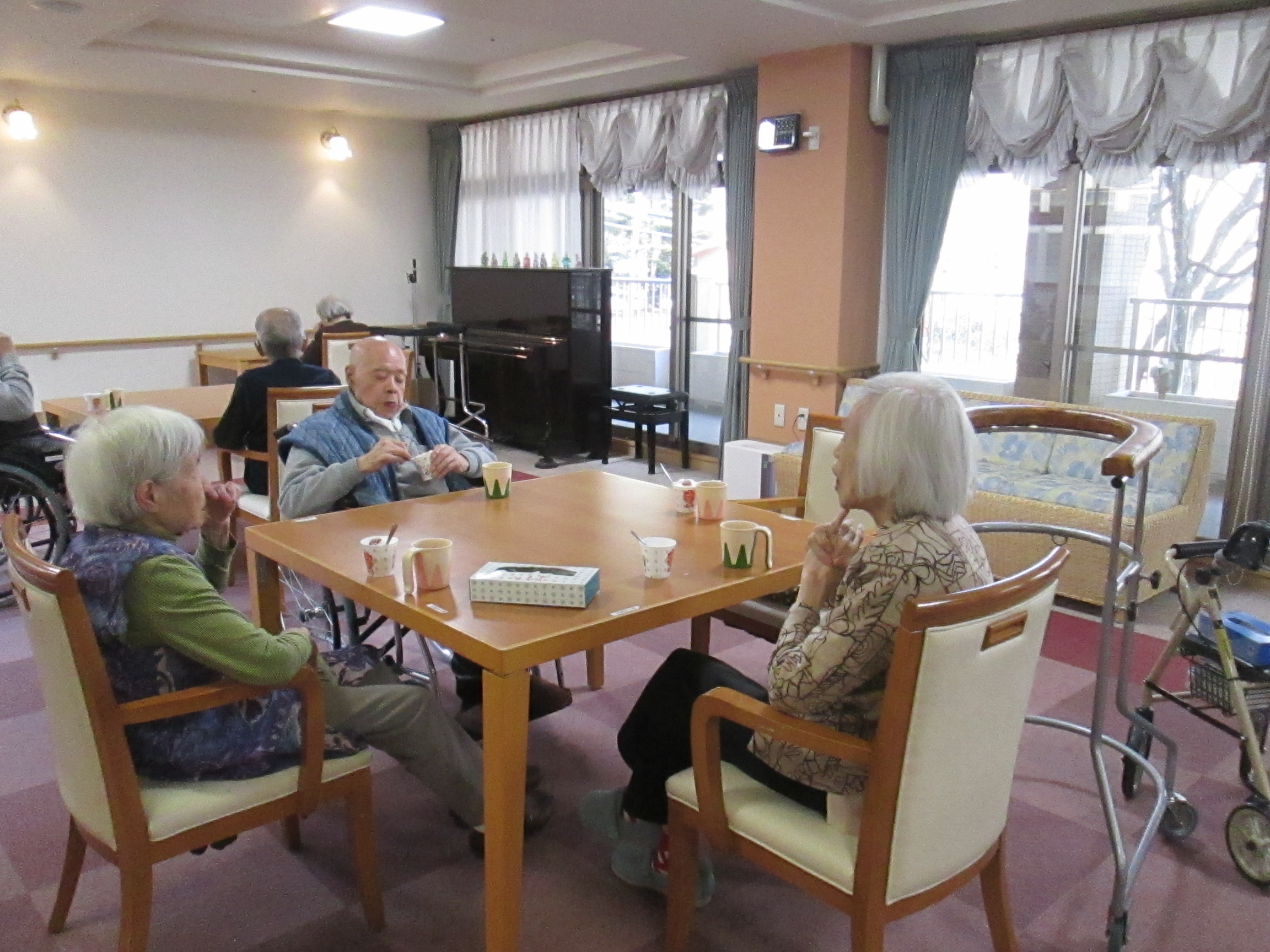 比較的お部屋で自由気ままに過ごされる事が多い草津のお客様ですが10:00のラジオ体操になると続々とお部屋から食堂へ集合されます!今はやりの言葉を使うなら良いフレイル予防になっていますね。このラジオ体操第一と第二をやると結構へとへとになります(笑)