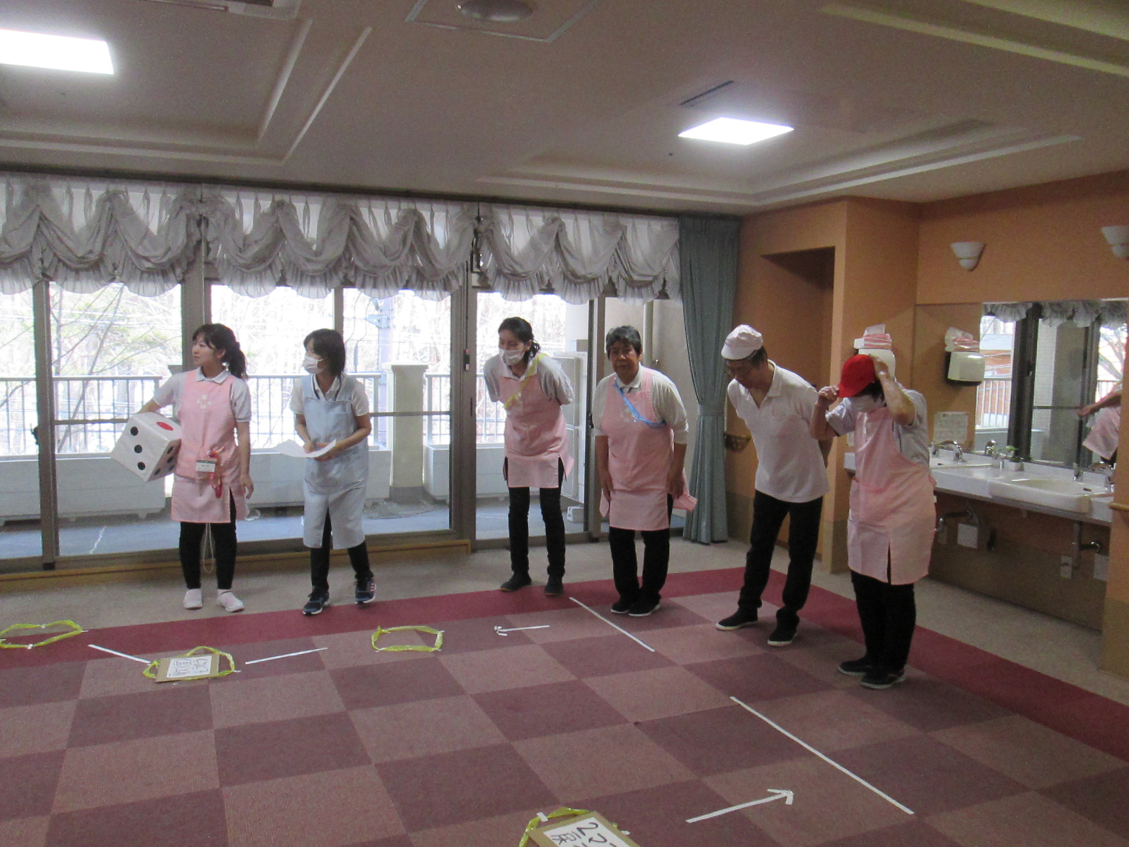チームに分かれてスタッフが駒になりすごろくゲームをやりました(^^)/