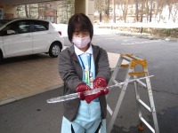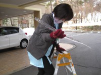 ケアマネージャーの成澤です(^^♪玄関の車寄せに50cm以上の氷柱が!ゆっくりと凍ったつららは透明度が高くてすごく綺麗ですね✨砕いてウィスキーと一緒に…なんていいですよね(^^)/綺麗ですが当たれば大怪我をしますのでつららの落下にはご注意下さいね。