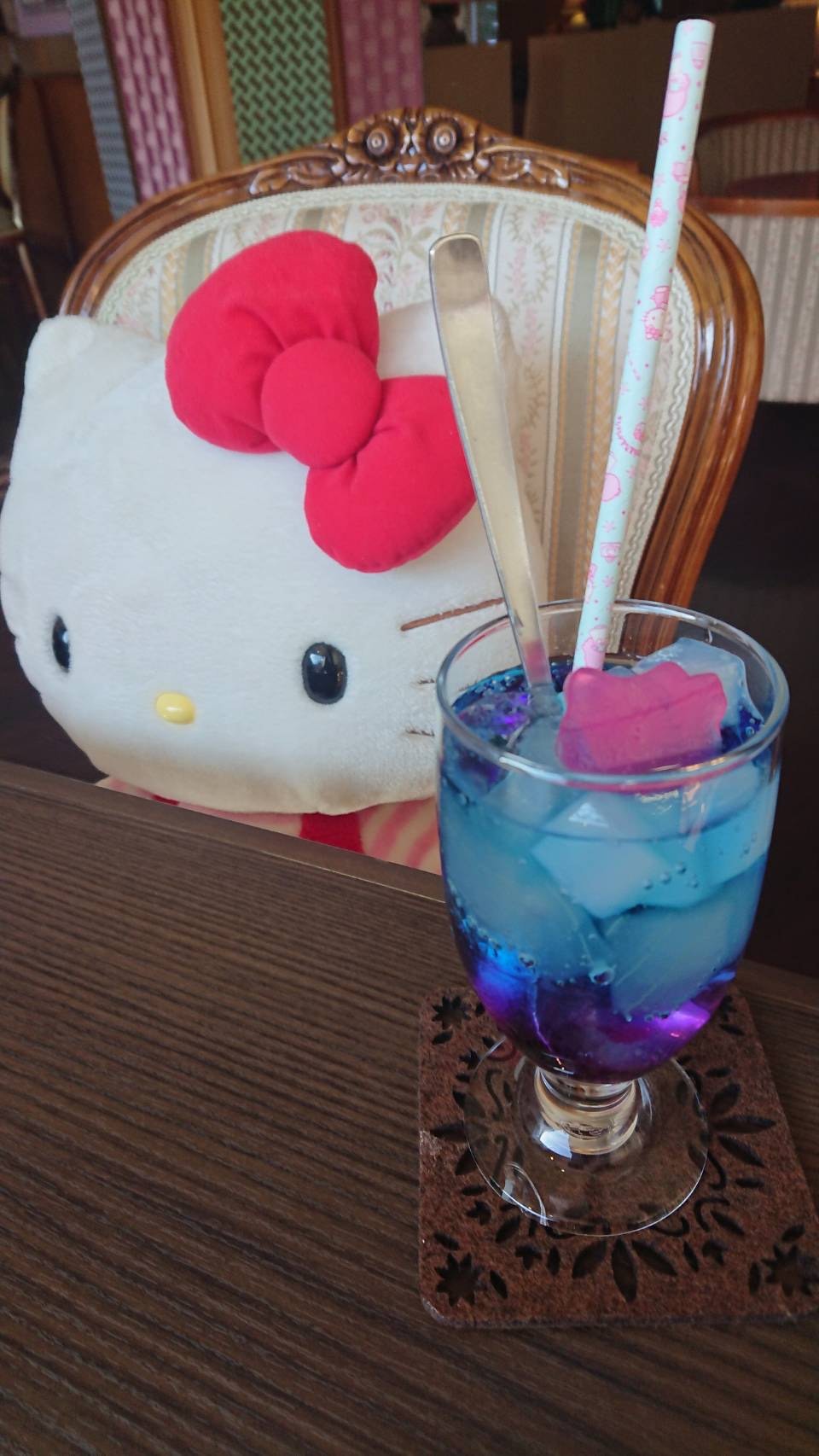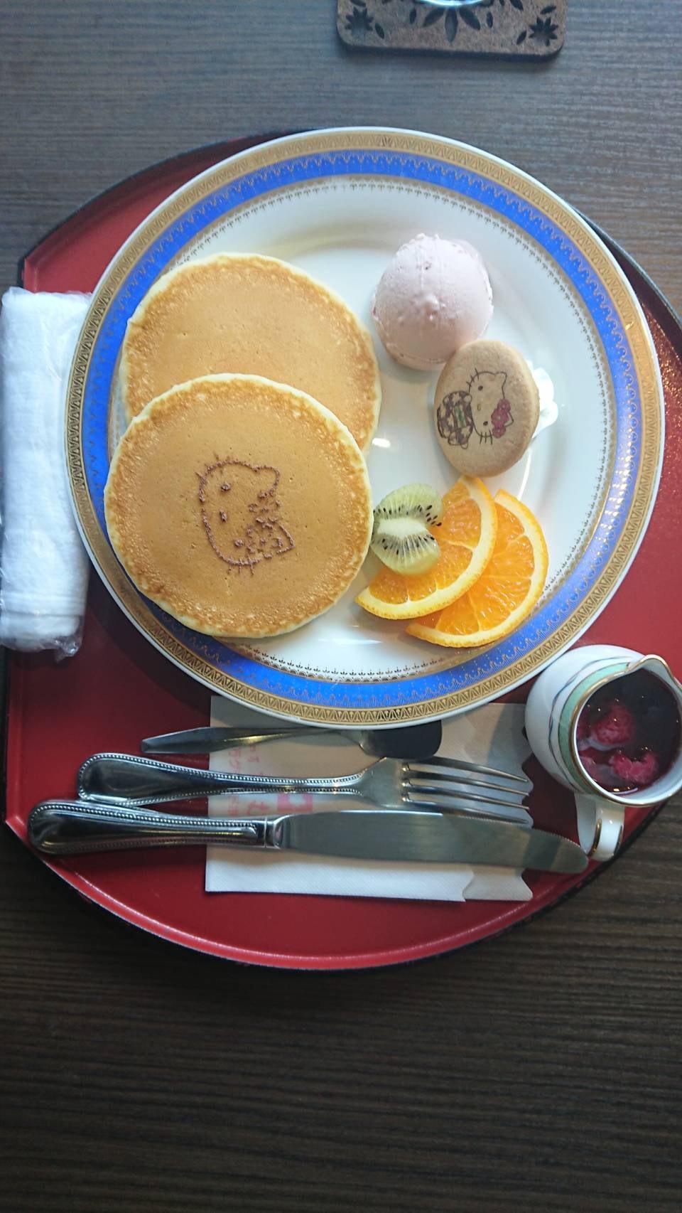 ホテル内のカフェは大正ロマンキティだらけ! 後ろの席のご主人「すげー‼うどんの中にもキティちゃんだよ」