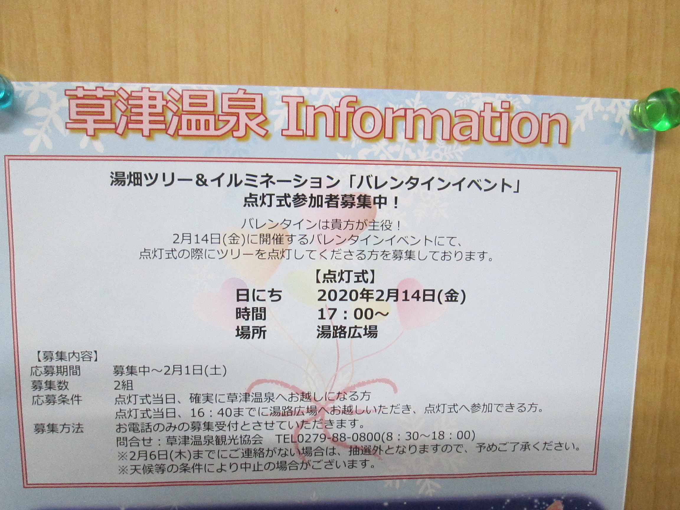 「バレンタインイベント」湯畑Tree&イルミネーション点灯式参加者募集中!2020年2/14(金)17:00~湯路広場
