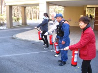 避難訓練の後は消火器による消火訓練!ご入居のお客様にもご参加戴きました!(^^)!いざという時は元気なお客様は貴重な防災戦力になるかも知れませんね。