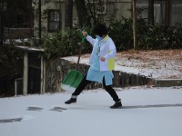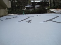 ケアマネージャーの成澤です(^^)/朝うっすら積もった雪に文字を書いてみました~ただの雪かきじゃつまらないですからね(笑)残念!お昼には溶けてしまいました(*_*;