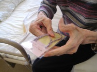 眼鏡にストラップを付けて首からかけてみたいとおっしゃる「M様」綺麗なビーズで出来たストラップに大喜び!(^^)! M様:「ただこの眼鏡遠くがよく見えませんね↷」スタッフ:「そりゃ老眼鏡ですから(笑)」