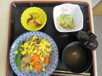 本日の昼食は「霜月膳」彩ご飯 さつまいもレモン煮 焼きナス