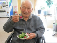 エネルギーコントロールを頑張っている入居者H様におやつ兼試食をしていただきました。