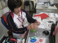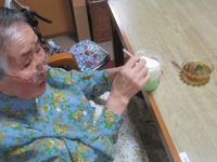 ケアマネージャーの成澤です(^_-)-☆プラスチックのコップの裏にイラストを貼り付けて出来上がり!トランプの様なカードだとめくりにくいお客様でもひっくり返しやすいユニバーサルデザイン!!今度は職員の顔で作ってみましょうね(笑)