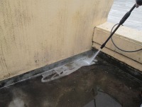草津は毎日雲の中…湿度が高くコンクリートに苔が生えて滑りやすい状態に~今日は非常階段の苔を高圧洗浄!