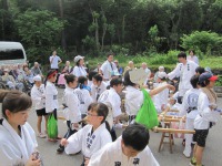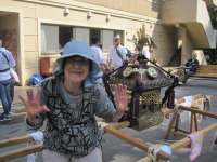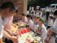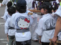 お神輿を担いで来てくれたちびっこに今年版のハローキティうちわをプレゼント!女の子は大喜び、男の子は…(笑)
