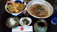 施設長の福田です!(^^)!休みなのでぶらぶらと小雨の湯畑を1人でてくてく…美味しい店がたくさんある草津ですが今日は「蕎麦かない」さんへ。まずは本県牧野酒造の「大盃」を冷で…うまい!料理が来る前に飲み切ってしまった(笑)そして注文したのは1日限定10食の「きのこおろしそば&天丼セット」これが実に美味!こしの加減が最高のこのお蕎麦、ついお酒とお蕎麦をお代わりしそうに(*_*)天丼には珍しいモロッコいんげんの天ぷら、酒が止まらなくなりそうなこのお店、お勧めです