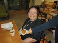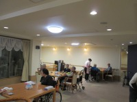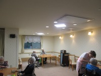 エアコン工事に伴い事務所に近いホールでお食事をとっていた仲良し三人組さんの楽しそうな声が