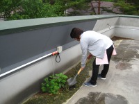 ケアマネージャーの成澤です(^_-)-☆私が来ているのは施設の屋上!標高1200mの位置する当施設の屋上は雲が近いです…今回は屋上の排水溝に溜まった葉っぱや枝を取り除いています。大雨が来る前に頑張りましょう~