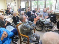 今日は前橋文学館で年に4回コンサートを行う等されているシンガーソングライターの「小暮哲朗」さんとお仲間の皆様によるコンサートを開催しました。楽しい歌と今月の誕生日者へのハッピーバースデーの歌のプレゼント!(^^)!あっという間の楽しい時間でした~