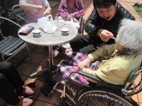 介護スタッフの池田です! 本日施設前にあるナウ・リゾートホテルさんまでお散歩に行ってきました。 天気が良くここちいい風が吹いていて入居者は気持ちよさそう♪ 入居者様と一緒にホテルで食べたアイスクリーム🍦 最高においしかったです♫