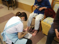 看護師の徳江です(^^)/入浴後の爪切りです~みんな切って欲しくておしゃべりしながら楽しく爪切り待ちです!他に魔女みたいな爪の方はいませんか?(笑)