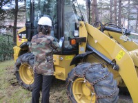今週雪の予報も出ているので、納車された場所から乗り込みやすい位置に移動しなくては…とガテン系事務員中澤さんの登場です♡見た目は華奢ですが実は元建設機械メーカー勤務、「車輌系建設機械」の免許もちゃんと持っています!事務所でパソコン打ってるより活き活きしてる?(笑)