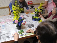 さあ今日の素材は「オンシジューム」「菊」「笹リンドウ」「スプレーカーネ」すごく明るく仕上がりましたね!(^^)!いつも女性のお客様だけの参加ですが、是非男性のお客様にも楽しんで戴きたいですね~