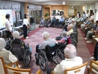 今日は10月生まれのお客様の誕生日会!今回は町の傾聴の会の方がお見え戴き、素敵なアカペラ・ピアノ演奏・一緒に楽器を使っての秋の唄の合唱、そして音楽に合わせたしっとりとした朗読…と盛りだくさん(^^♪秋らしい誕生日会になりました~