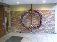 玄関横に飾られています天然のつるを編んで作った巨大リースがハロウィン仕様に!製作費はことごとくただに近いリースですが施設のエントランスにはよく似合います(^^♪