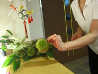 秋ですね~お客様からお庭で採れた栗をたくさん戴きました!ちょっとお願いしてディスプレイ用にと枝と少し割れているイガも戴きましたので玄関に!秋がどんどん近づいてきましたね(^^♪