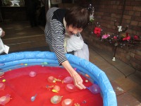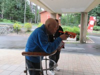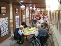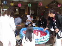 ゲームコーナーの射的では狙った商品になかなかあたらず入居者様は狙いを定めて真剣♫それ以上に応援している周りの入居者様やご家族様の声援がもっともっと真剣(笑)白熱の射的ゲームでした!(^^)!その他金魚すくいでは金魚以外にもなかなかすくえない大きな水風船やアヒルすくいなどに沢山のお客様に挑戦していただきました(^^♪ 昔懐かしい遊びは世代を超えて皆様で楽しめる遊びですよね。