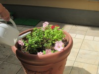お花の事に詳しい入居者様にご指導をいただきながら中庭に咲いているペチュニアの手入れをしました。だいぶ上に伸びてしまっていたので思い切って刈込みをしたのですが。少しすると新しい芽が出て沢山の花が咲くとの事ですので今からとても楽しみです(^^)/