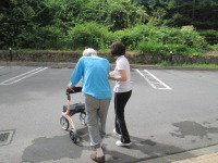 今現在台風12号の影響もなく、青空が出ております。とても過ごしやすい気温なので入居者様と施設庭に咲いている山アジサイをみてきました。やはり外は気持ちがいいですね♪