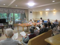 テンポについていけないんだよ!とおっしゃっていた入居者様もいましたが皆様とても楽しそうに歌っていらっしゃいました♪