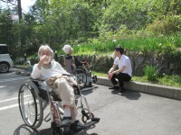 気持ちのいい青空のもと、施設庭にて青空おやつレクをしました。心地よい風が吹いている中、入居者様と一緒に歌を歌ったり草花を見たりと…夕方までゆっくり新緑をみながら青空レクを楽みました♪