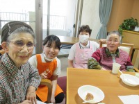 スタッフ手作りのパンケーキ♪ あんこ・はちみつ・アイス・チョコレートクリームのトッピングも用意し入居者様のご希望のパンケーキを食べて頂きました(#^.^#)施設内に甘~い匂いが漂い美味しいおやつタイムとなりました♪