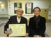 夕方、地元の村長・住民福祉課長がお祝いの賞状ならびに記念品を持って来てくださいました。ご家族様もお祝いにかけつけ、和やかな雰囲気で100歳のお祝いを入居者様・職員と共にさせて頂きました。