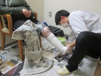 先日、入居者様の下肢装具を新たに作り直す為の型どりを行いました。退院し病院から離れると装具の修正や調節を受ける機会が少なくなり、合わない装具を使い続けざるを得ない方も多いと思います。当施設では理学療法士の他、義肢装具士の協力で装具について見きわめや手続き等、ご案内できますのでお気軽にお声掛け下さい。