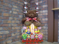 看護師の徳江です~(^^♪毎日玄関の受付前で皆さんをお迎えしてくれるこの子もひなまつりバージョンに!赤い可愛い着物がよく似あっています。会いに来て下さいね。