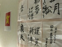 お正月にちなんだ作品をたくさん玄関ホールに飾っています、書初め・犬張り子・犬の動物お手玉等お越しの際には是非ご覧戴きお褒めの言葉を戴けると有難いです!作成された入居者様のモチベーションが更に上がります(笑)