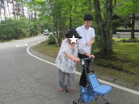 緑豊かな景色を眺めながら歩くと入居者様の足取りも軽やかに感じますね♫入居者様と一緒にリハビリ散歩をしながら森林浴、楽しんできました!!