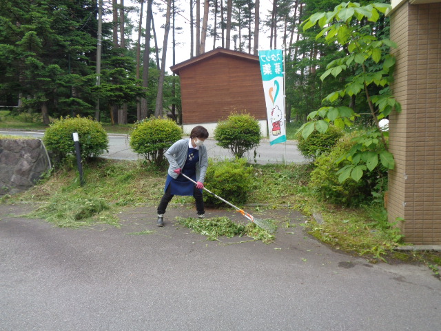 施設周りの草刈りをしました!