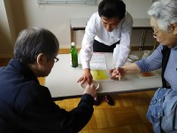 今日の勉強会では「笑いヨガ」を実践!お隣さんと顔を合わせて元気に笑顔の体操~私自身も笑顔で仕事しなきゃいけませんね(^^♪