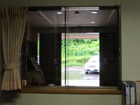 施設長の福田です、いつもは私の机からは右の写真の様にエントランスホールが見えるのですが、正面玄関からのお客様は見えません。と言う訳で本日は事務員がお休みなので、お客様の来訪が確認しやすい事務員の席で仕事中です!正面玄関外には青々とした熊笹が茂っています。こっちの席の方が眼には優しいかも(笑)