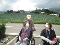 天気が良いと『浅間山』が見えるとても景色の良いところなのですが、本日は少し雲が多く残念ながら見えませんでした。でも、入居者様は辺り一面に広がるキャベツ畑に大喜び!私たちにとっては当り前の風景ですが、見渡す限りのキャベツ畑ってなかなか見る機会無いですもんね(笑)