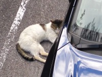 お客様のお部屋からふと駐車場を目にすると私の車の運転席横に猫が…時々施設の庭を歩いているのを見かけますが今日は車の横でお昼寝…私が猫を飼っているので車にも匂いがついていたのでしょうか(笑)久しぶりにほっとする瞬間でした。