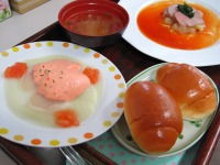 料理長の松村です。本日は月に1回のスペシャルメニュー!①サーモンパルフェの春キャベツソース②野菜スープ③豚フィレ ブランジュールソーストマト④ケーキ⑤ロールパンが豪華に並びました。料理長とシェフが腕によりをかけて作りました自慢のコースです!食事の味が自慢のメディス草津へ是非お越し下さいね~