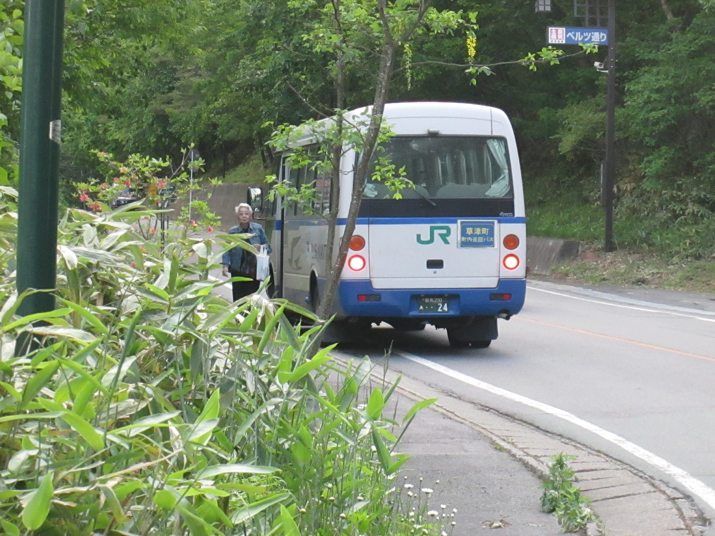メディス草津のある草津温泉はレトロなワンコインバス(¥100です)が町内を巡回してます。発着は草津温泉バスターミナルで湯畑や西の河原公園、大滝の湯などを巡回してます。本日入居者様がバスを御利用され草津町内の散策にお出かけになられたので、帰りのバス停でヨーロピアンタイプのレトロバスから降りるところを撮るつもりでしたが…本日バス点検の為、代車のバスでした(笑)