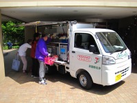 毎週火曜日の午後は訪問販売の日!セブンイレブン草津東店様のご協力の元皆さん楽しくお買物です。ちなみに今日の車は新車のダイハツハイゼット、LED照明で陳列棚が明るくなりましたね。勿論ナンバーは711(セブンイレブン)です(笑)